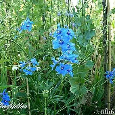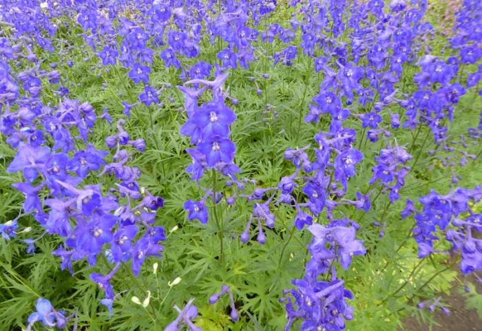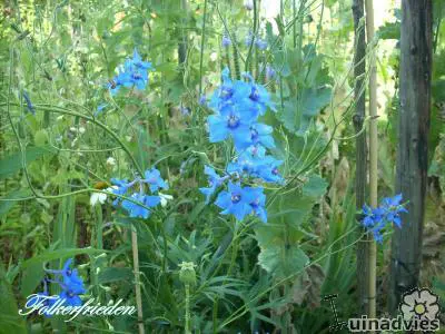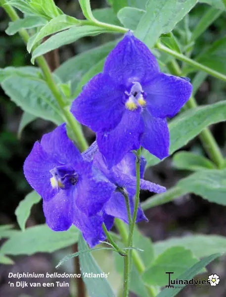 Delphinium belladonna 'Atlantis' fleurit en bleu foncé.