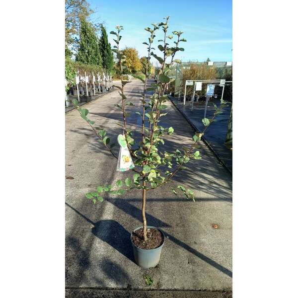 Les fruits durs (récoltables en octobre) sont comestibles uniquement cuits (compote délicieuse et très savoureux en compote de pommes) et ont une couleur jaune doré une fois mûrs.