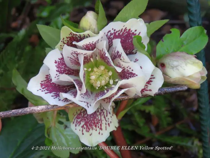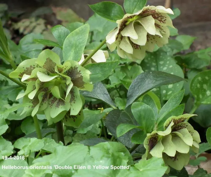 Helleborus orientalis 'Double Ellen' est une sélection avec de magnifiques fleurs doubles sur de longues tiges.