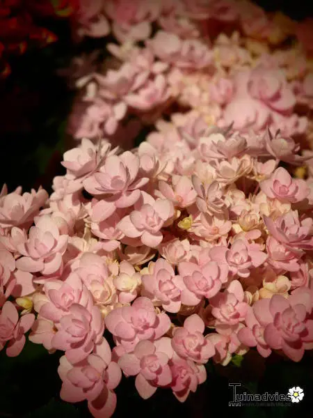 Hydrangea macrophylla 'Jomari' est un hortensia à fleurs doubles avec des ombrélères roses.