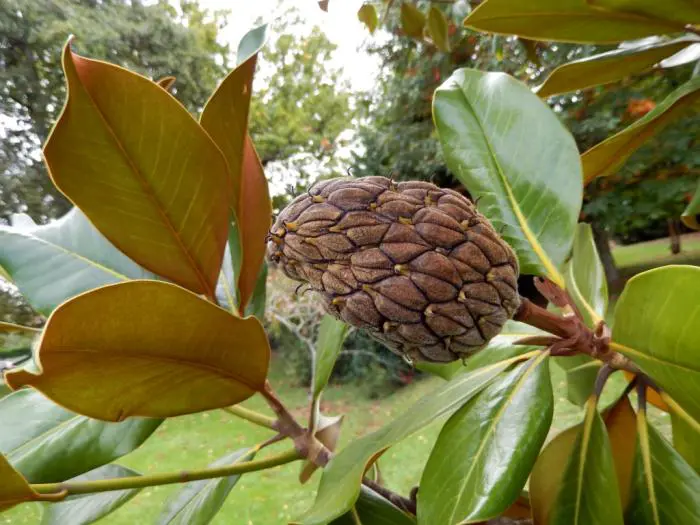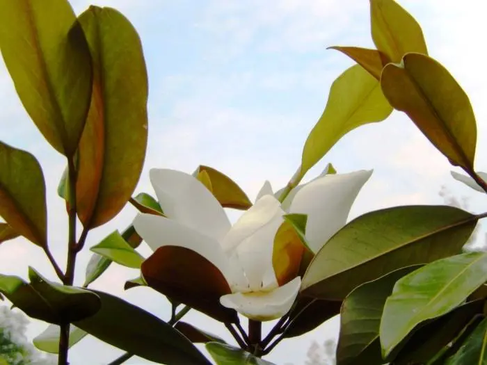 Magnolia grandiflora est un arbre à feuilles persistantes avec une large cime pyramidale et des feuilles coriaces avec un dessous brun contrastant. Une fois installés, ils se développent solidement