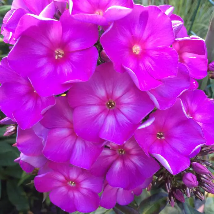 Phlox 'Sweet Summer Surprise' fleurit en violet avec du blanc en son centre.