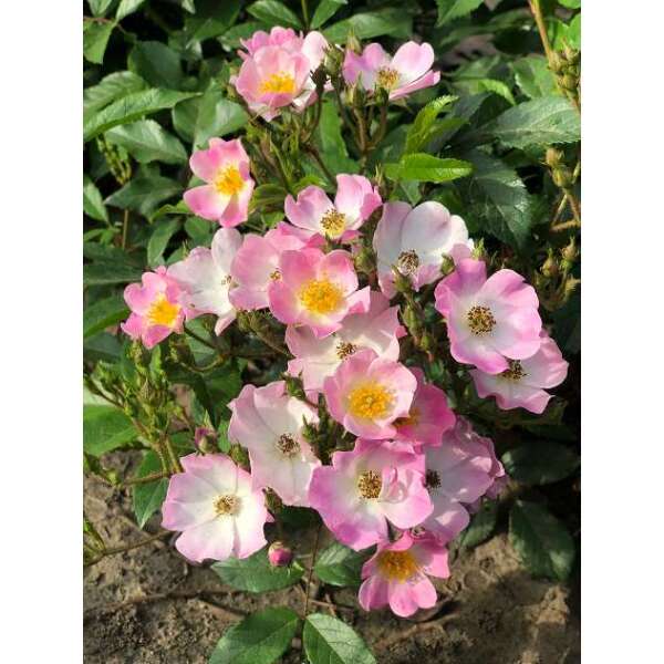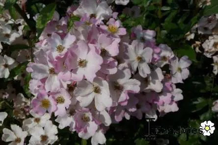 Les fleurs apparaissent en grappes sur la plante, elles s’ouvrent d’abord en rose foncé puis s’estompent rapidement en blanc-rose.