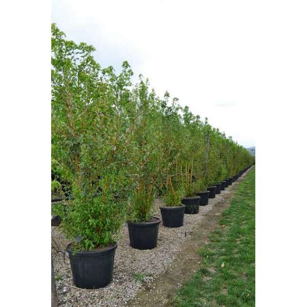 Salix alba var. Vitellina a un habit droit avec une couronne ovale et des brindilles de couleur orange à jaune et fortement tombantes. Les feuilles sont allongées et vert clair, bleu-vert sur le dessous et argentées et poilues.