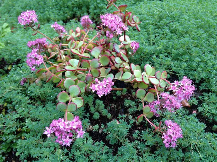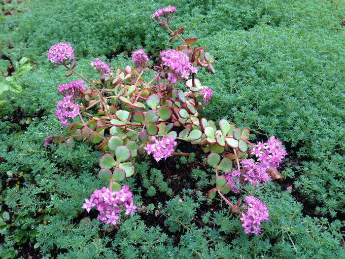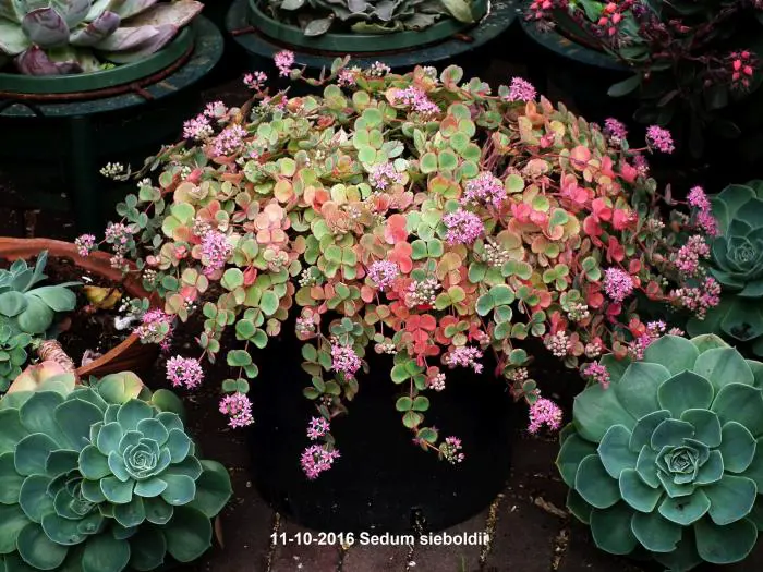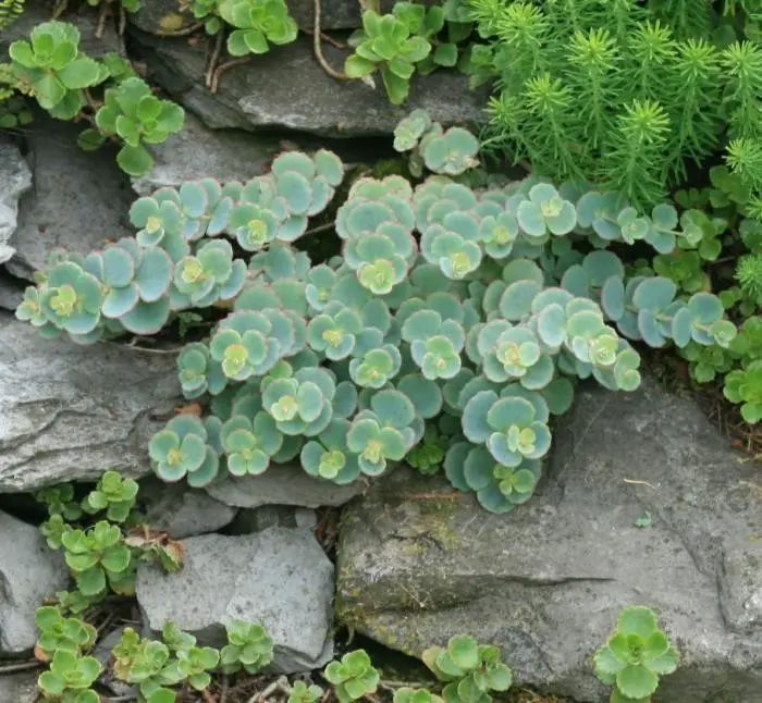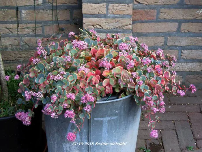 Le Sedum sieboldii est un excellent couvre-sol avec des feuilles épaisses et rondes bleu-vert. Plus tard dans l’année, les bords des feuilles deviennent rouge-violet.