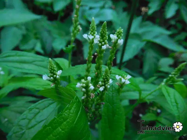La verbena hastata sème spontanément, mais ajoutez une étiquette de plante, il y a beaucoup de risques de l’arracher autrement en désherbant au printemps.