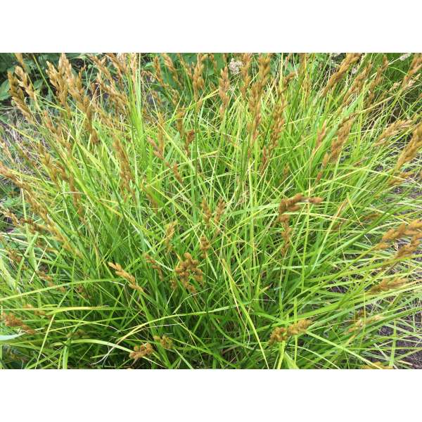 Carex vulpina est une espèce d’herbe verte haute avec des épines épaisses de couleur vert-brun.