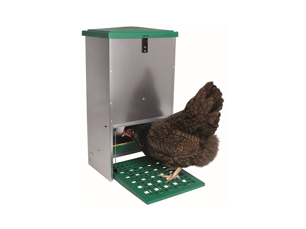 Une pédale de haute qualité et innovante pour nourrir la volaille. Les poules n’ont accès à la nourriture que lorsqu’elles montent sur l’étagère de l’escalier de la mangeoir. Le poids de la volaille ouvre le rabat au bas de l’abreuvoir, après quoi les poulets ou les faisans peuvent manger. Lorsque les animaux quittent l’escalier, le rabat se referme de sorte que les oiseaux de jardin, pigeons sauvages ou petits rongeurs n’ont pas accès à la nourriture.
