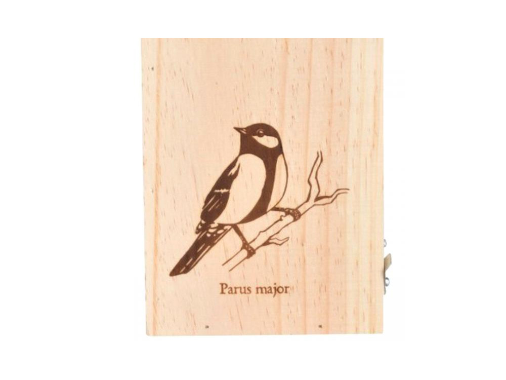 Cette nichoir en bois naturel possède une ouverture d’entrée de 32 mm. Sur le devant se trouve un magnifique symbole de marque avec le nom latin « Parus major » en dessous.Le côté peut être facilement ouvert pour être nettoyé en automne.