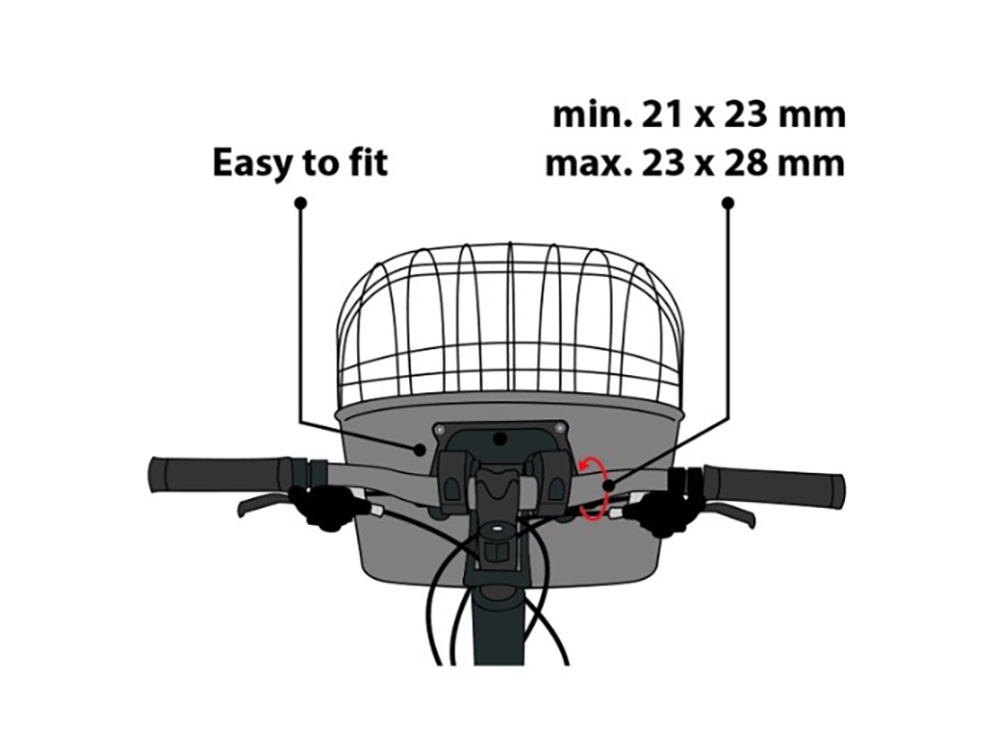 Avec le système de suspension inclus, vous pouvez fixer le panier en toute sécurité au guidon.
