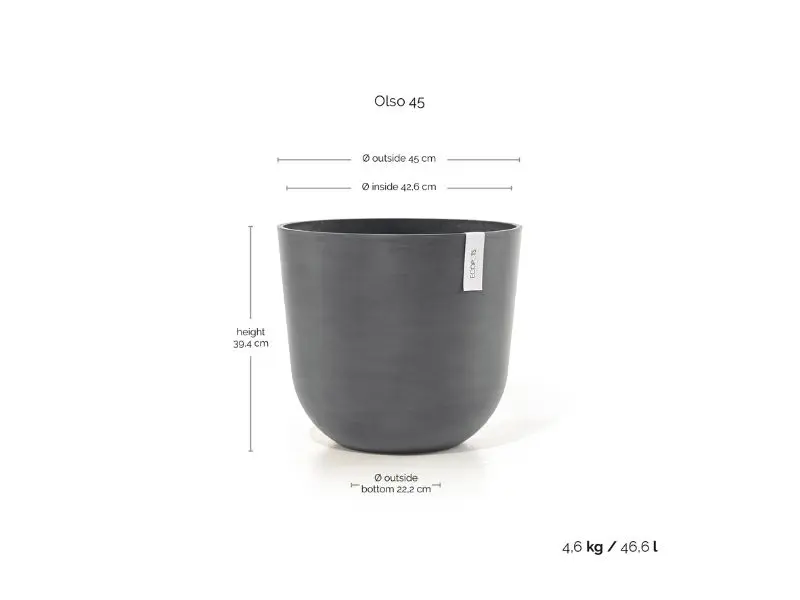 L’Ecopots Oslo combine parfaitement élégance classique et design moderne. Ce pot est fabriqué en matériaux recyclés et possède un bouchon en caoutchouc au fond, ce qui permet d’être utilisé aussi bien à l’intérieur qu’à l’extérieur. Avec une large gamme de tailles et de couleurs, vous trouverez toujours le pot parfait pour votre plante ou votre espace.