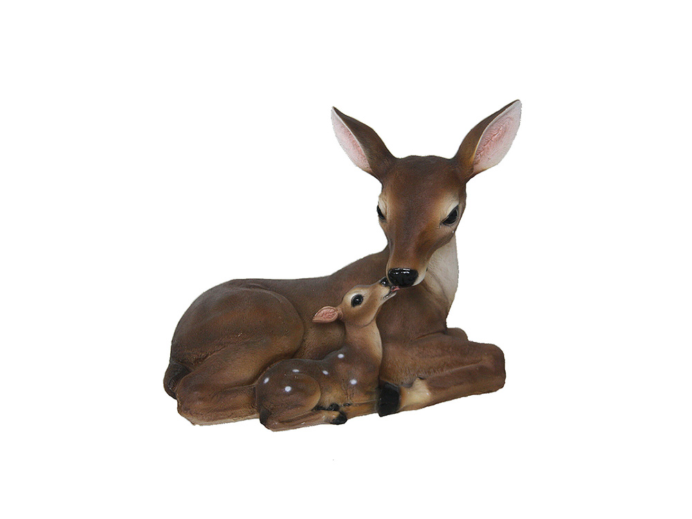 Avec cette sculpture, la biche et le faon se serrent et le faon lèche amoureusement sa mère.