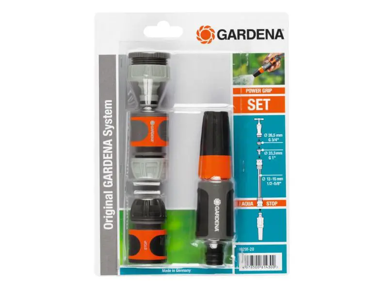 Le set de démarrage Gardena 13/15 mm contient une pièce de robinet avec adaptateur, une pièce de tuyau, un raccord d’arrêt d’eau et un spray de jardin basique. Avec cet ensemble, vous avez tous les besoins de base sauf le tuyau pour connecter et utiliser un tuyau d’arrosage Gardena.
