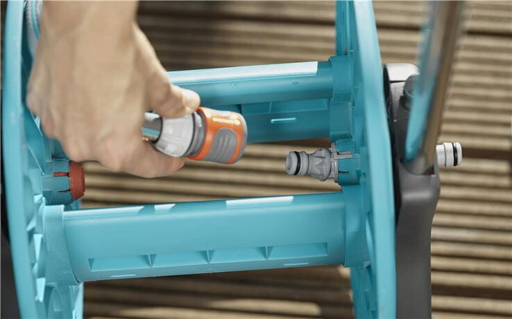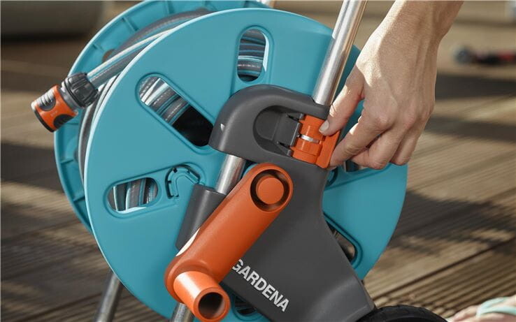 Le Gardena CleverRoll est un chariot complet pour tuyaux qui symbolise l’économie d’espace avec une qualité maximale. L’ensemble est facile à déplacer avec le levier et les roues, et grâce à la protection innovante contre le gel , il peut être laissé dehors toute l’année sans problème.