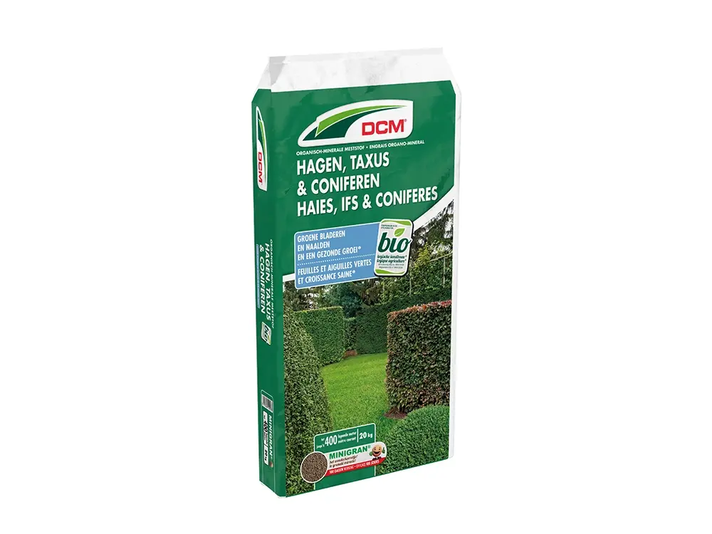 DCM Fertilizer Hedges, Ifs et Conifères est adapté aux besoins nutritionnels des conifères, conifères, épicéas, ifs et haies. Applicable dans le jardin biologique.