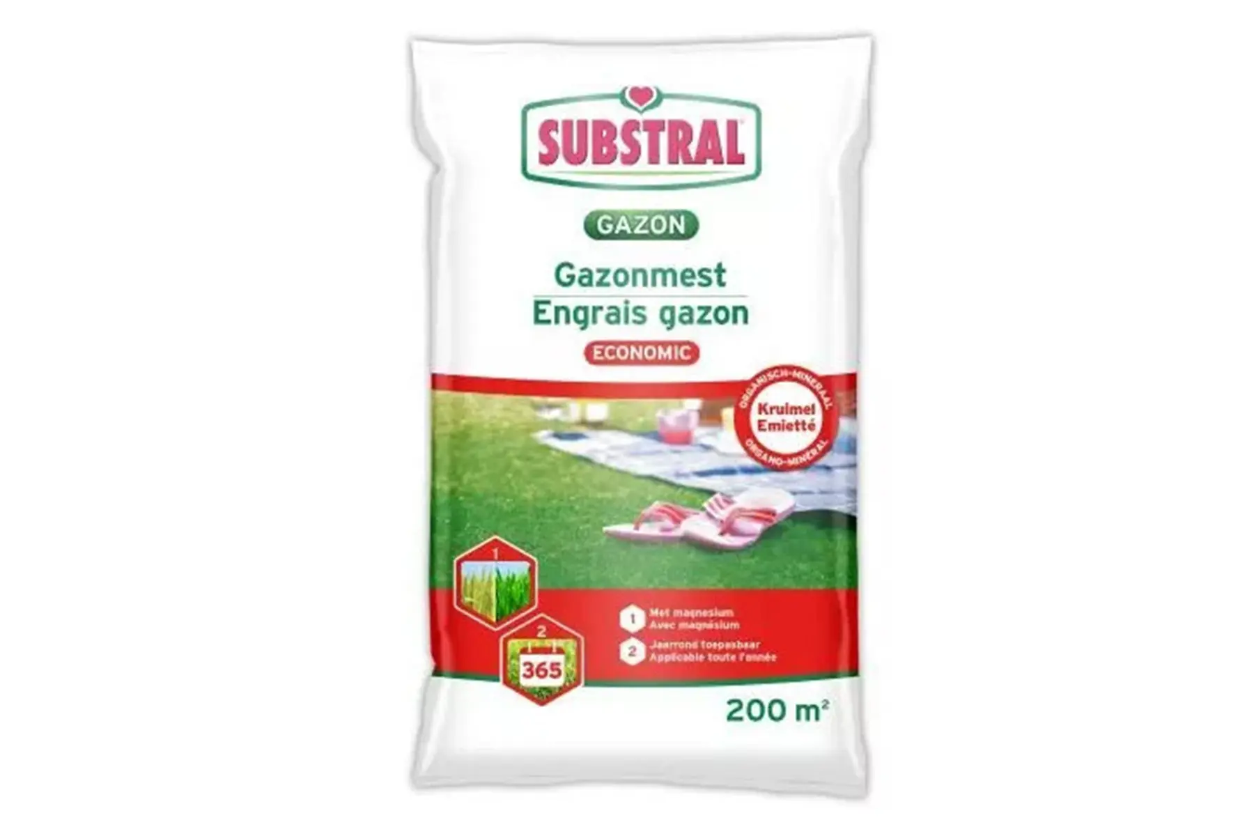 - Appliquez sur une pelouse mouillée de rosée et, pour des résultats optimaux, 3 fois par an.