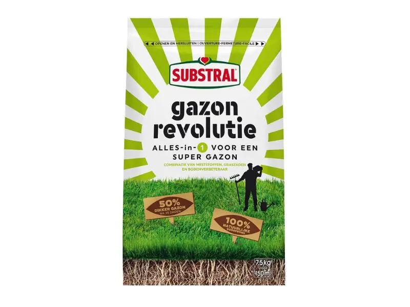 Substral Lawn Revolution est une solution tout-en-un pour une super pelouse. Il s’agit d’une combinaison d’engrais, de graines de gazon et d’améliorant du sol pour des résultats optimaux. Elle aide à prévenir les mauvaises herbes, la mousse et les zones nues, et offre une pelouse 50 % plus épaisse après seulement 35 jours. De plus, Lawn Revolution est d’origine 100 % naturelle.