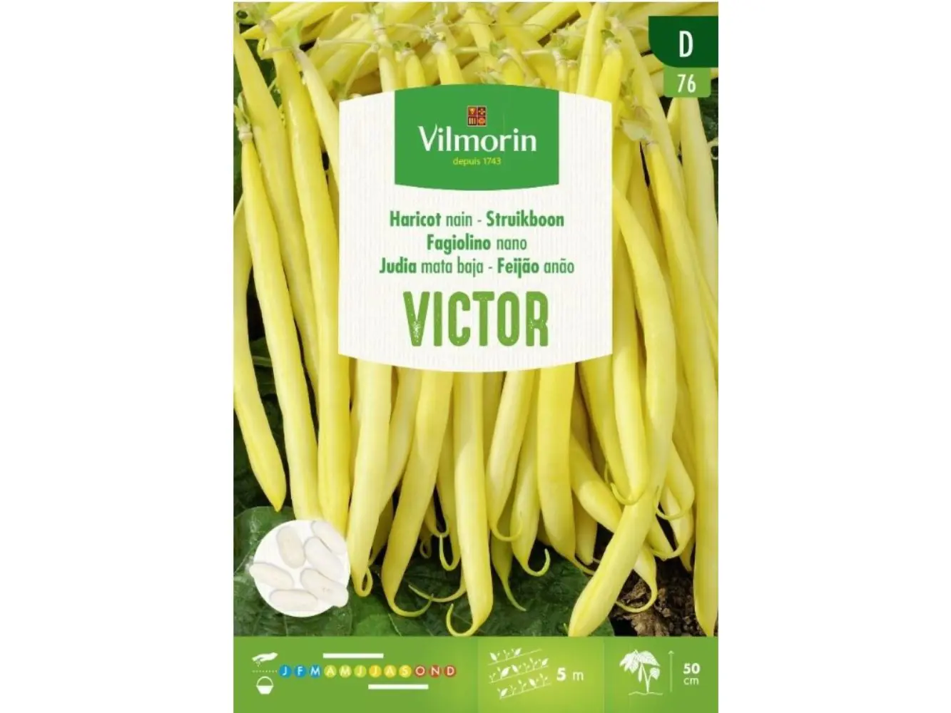 Le haricot Victor est une variété très productive et forme de très fines gousses d’un jaune doré. La plante pousse légèrement, ce qui facilite la cueillette.
