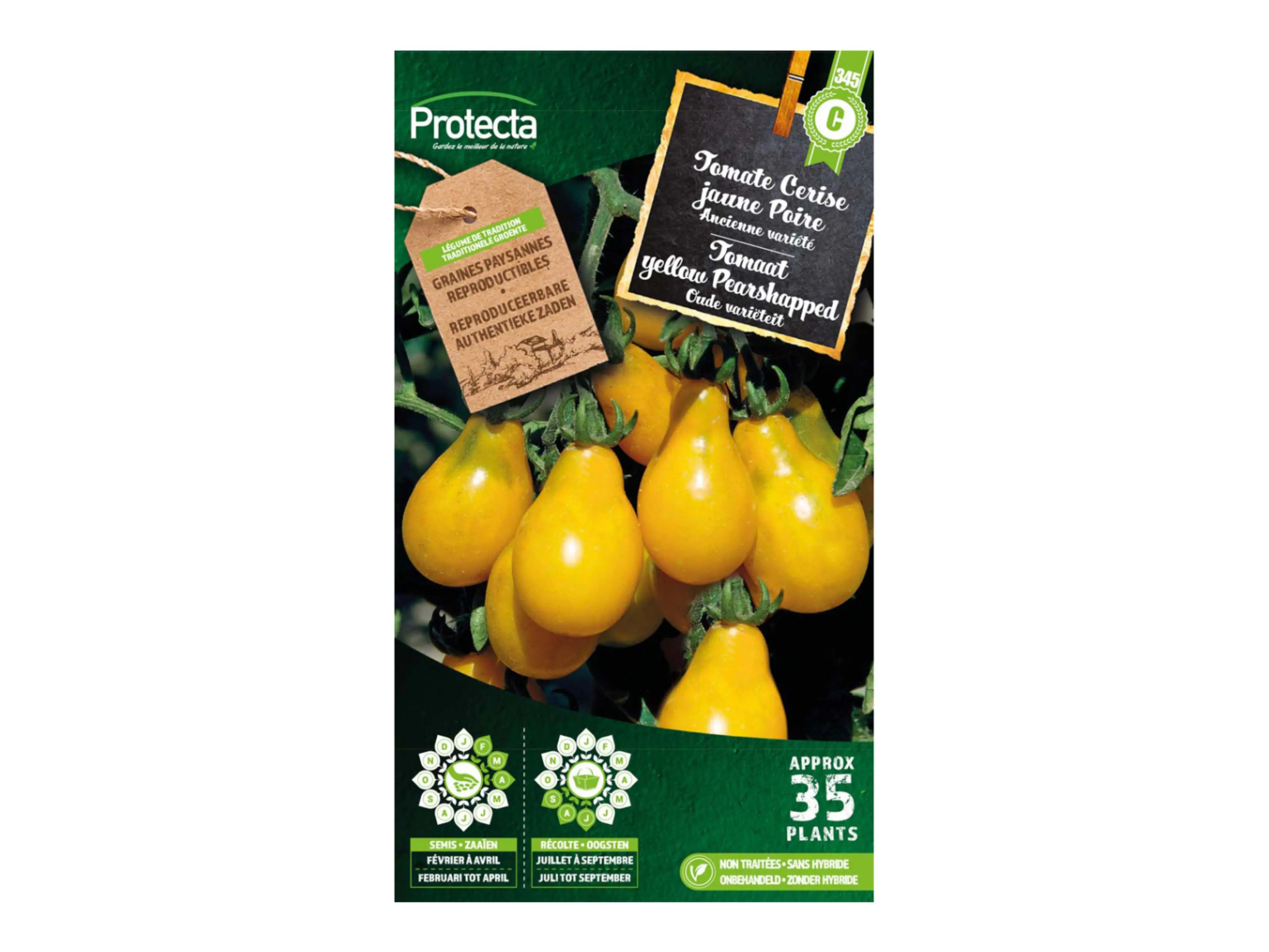 Tomate jaune en forme de poire, une variété ancienne et fiable avec un rendement élevé. Cette plante de tomate produit de magnifiques tomates cerises jaunes, en forme de poire , au goût sucré. Idéal comme entrée et très adapté à la culture en pot.