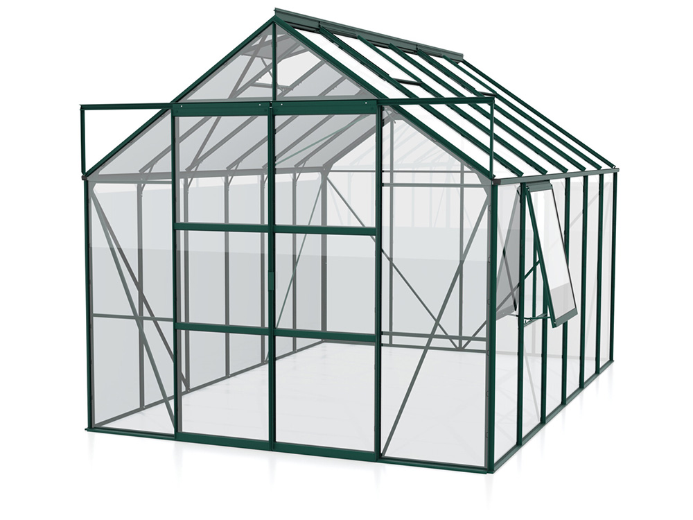 Jupiter a une hauteur impressionnante de 248 cm et une largeur de 257 cm. Une hauteur de bord de toit de 154 cm offre plus d’espace pour la tête et d’espace de travail. Une résistance supplémentaire est obtenue grâce à des plaques d’angle et des renforts dans toute la serre, afin que vous puissiez exercer plus de tension sans souci.