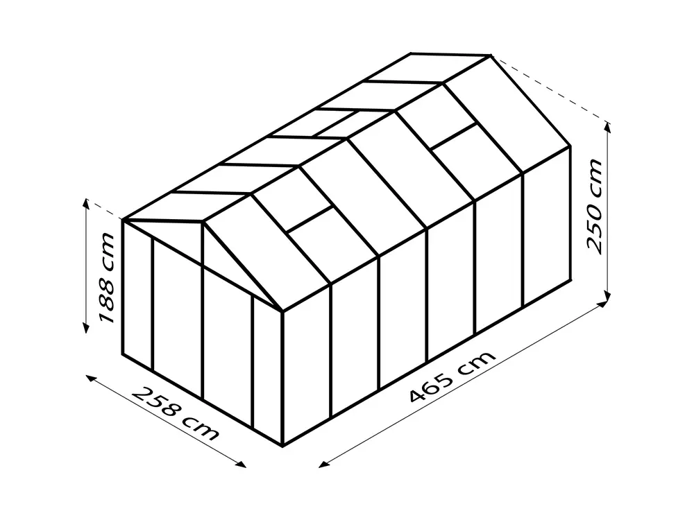 Cette version est équipée de séried’une porte de luxe à double charnière avec serrure, offrant une sécurité supplémentaire, et de 2 ou 3 puits de lumière (selon la taille) pour une ventilation optimale. Les longues fenêtres donnent à la serre un aspect moderne et élégant, tandis que la finition noire donne un aspect intemporel et chic. Des gouttières, un jeu de descentes pluviales et des profils de fondation sont inclus pour un drainage et une stabilité parfaits.