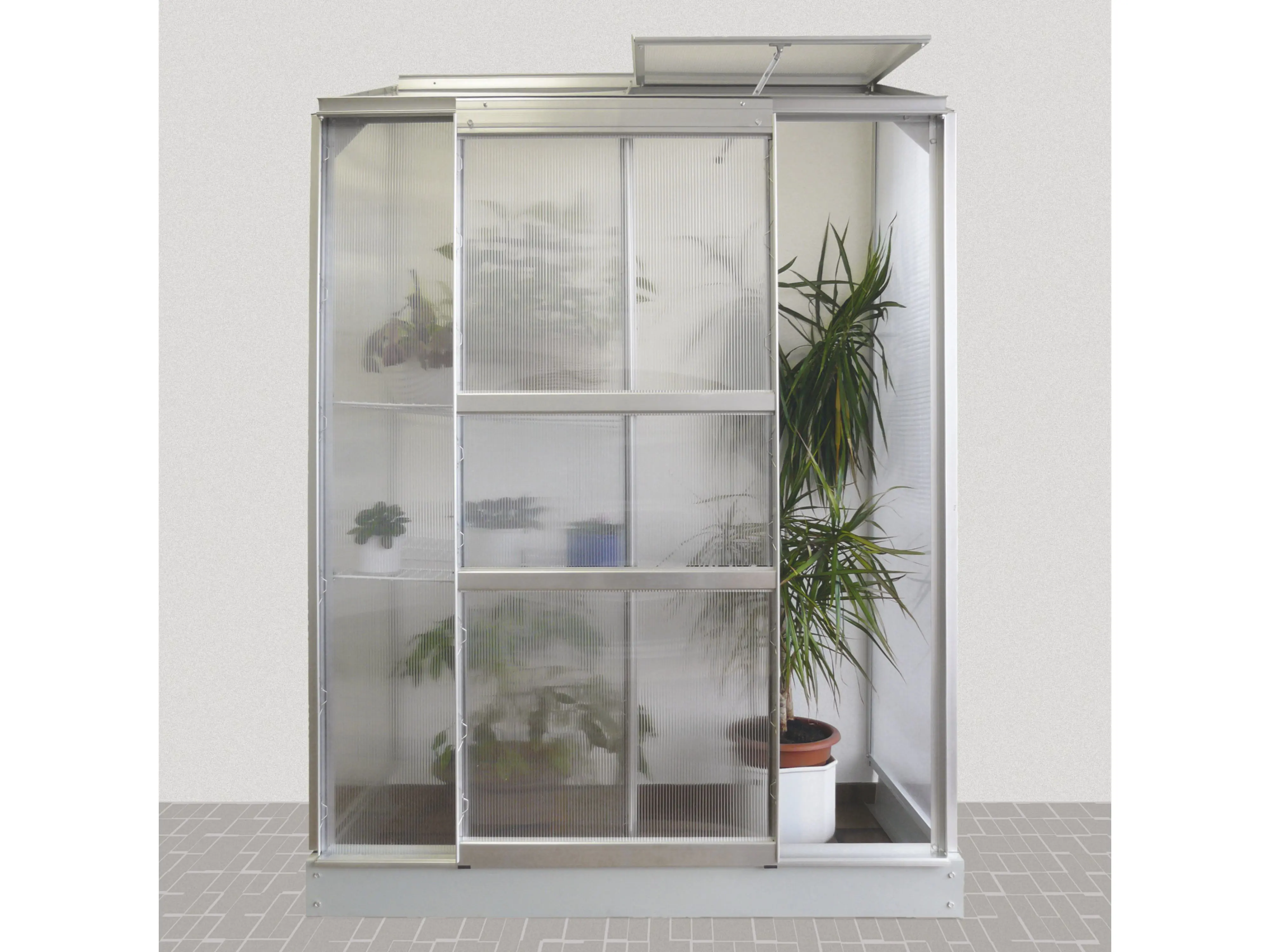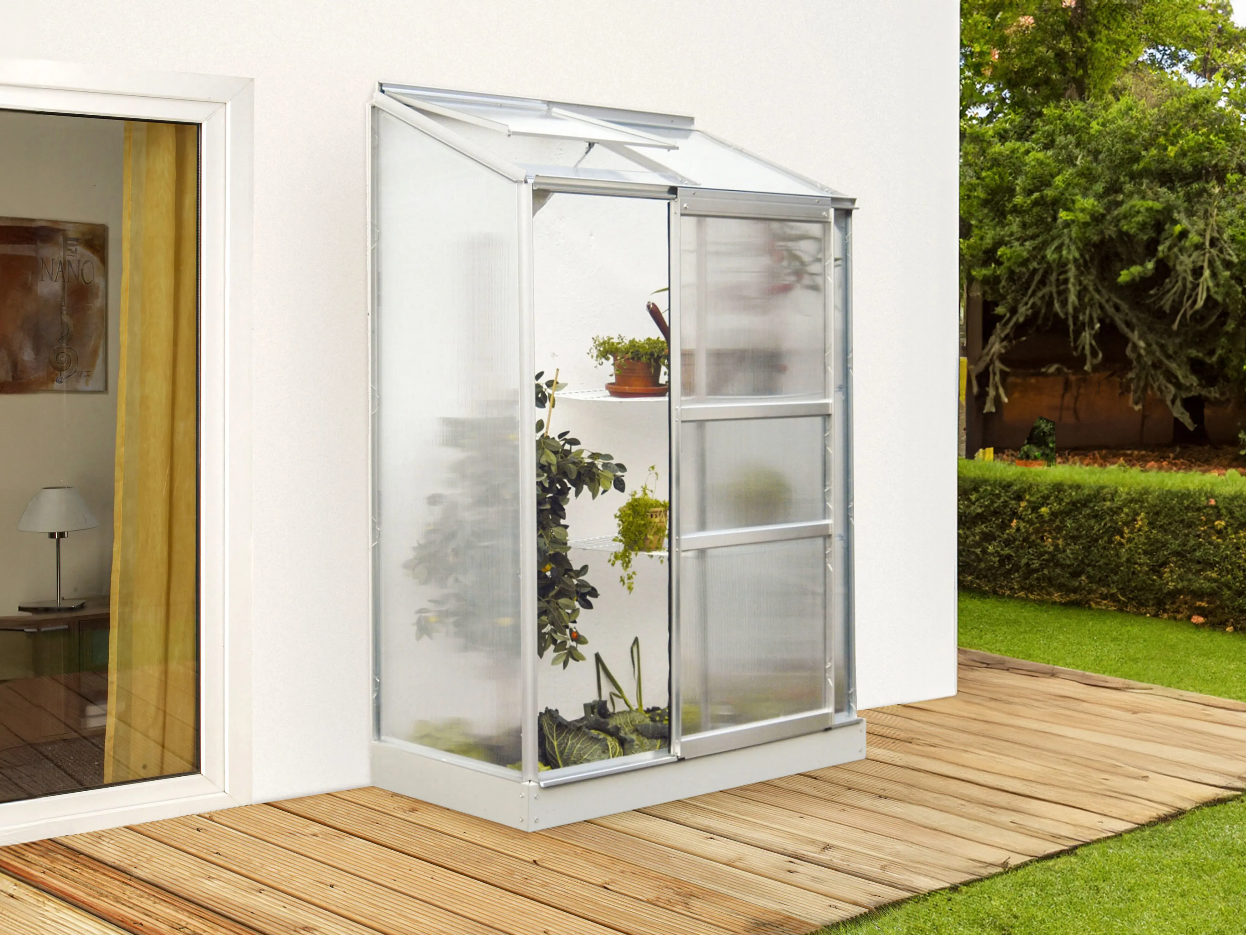 La serre murale Ida est la solution idéale pour les jardiniers disposant d’un espace limité. Conçu pour être utilisé sur balcons, terrasses ou jardins clos, ce modèle est idéal pour les semis et les boutures ainsi que pour la culture de poivrons et de tomates. La haute faîte et la porte coulissante fluide assurent un accès facile. La puits de lumière assure une bonne ventilation en permanence.
