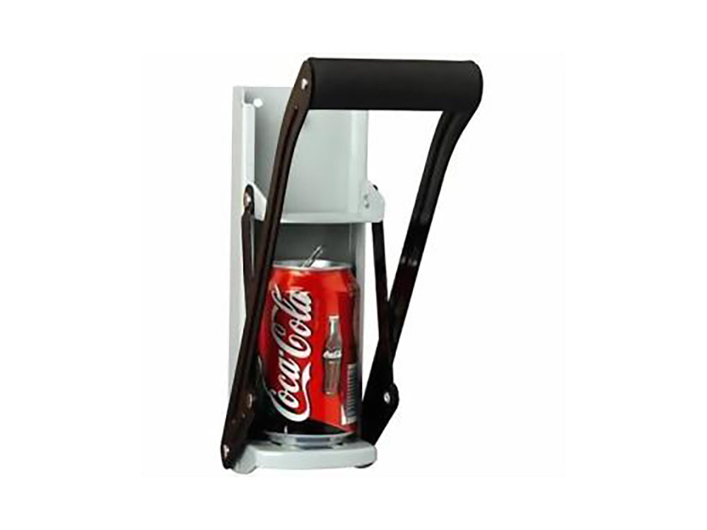 - Mettez une canette vide dans la presse et appuyez sur le levier vers le bas