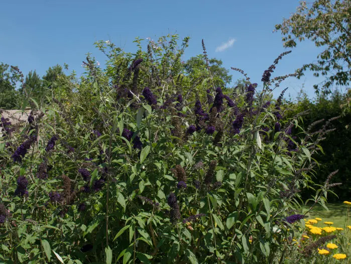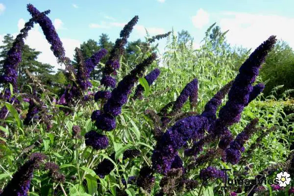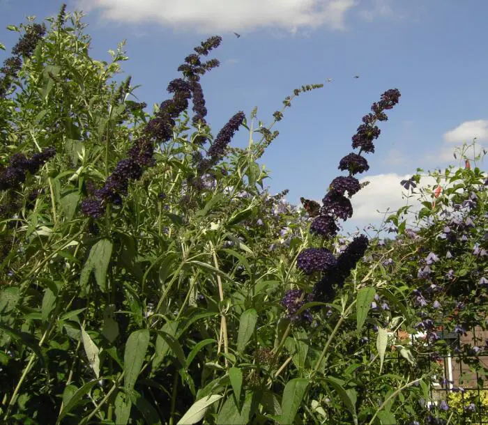 Buddleja davidii « Black Knight » est un buisson de papillons aux feuilles vert argenté et à une fleur violet très foncée. Les longues panicules florales (30 cm) fleurissent tout au long de l’été avec un parfum merveilleux qui attire de nombreux papillons.