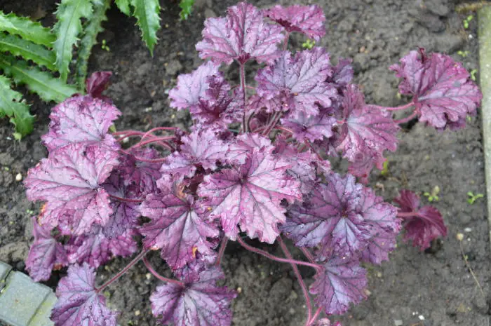 Heuchera possède ce qu’on appelle des feuilles racinaires, qui sont fixées directement à la racine de la plante par une longue tige. Les feuilles de toutes les espèces de Heuchera sont gracieusement en forme de cœur.
