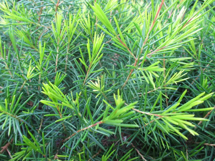 Les arbustes atteignent environ 2 m de hauteur et sont également larges, avec des feuilles aromatiques en forme d’aiguille vert clair. Dans notre climat, elles resteront plus basses, +/- 100 cm.