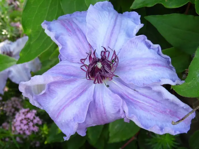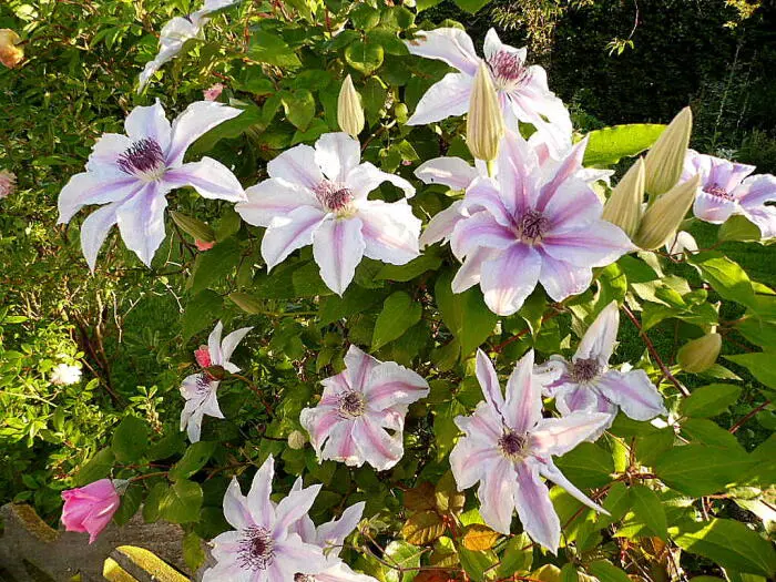 Une clématite forte à grandes fleurs du groupe Patens, assez résistante aux maladies.