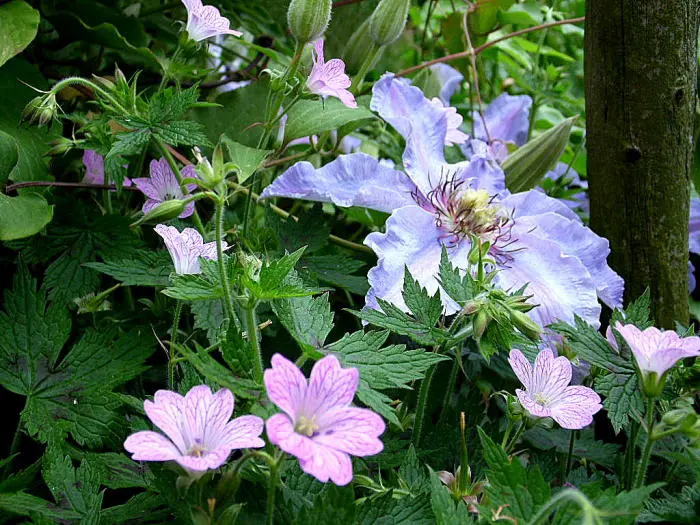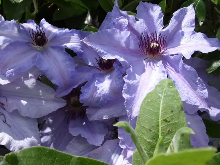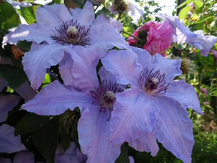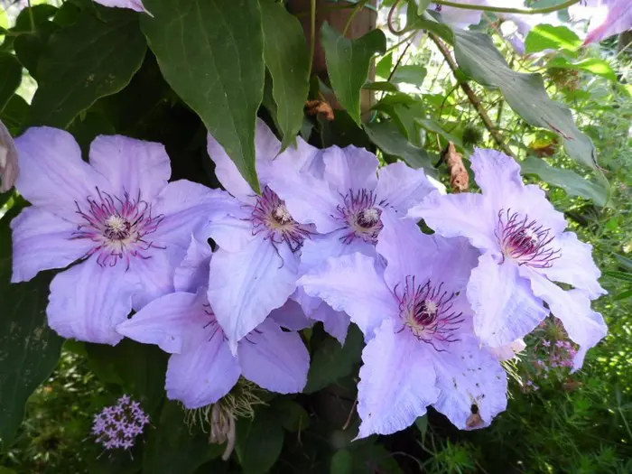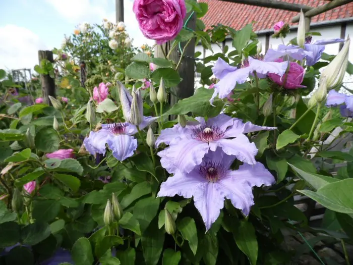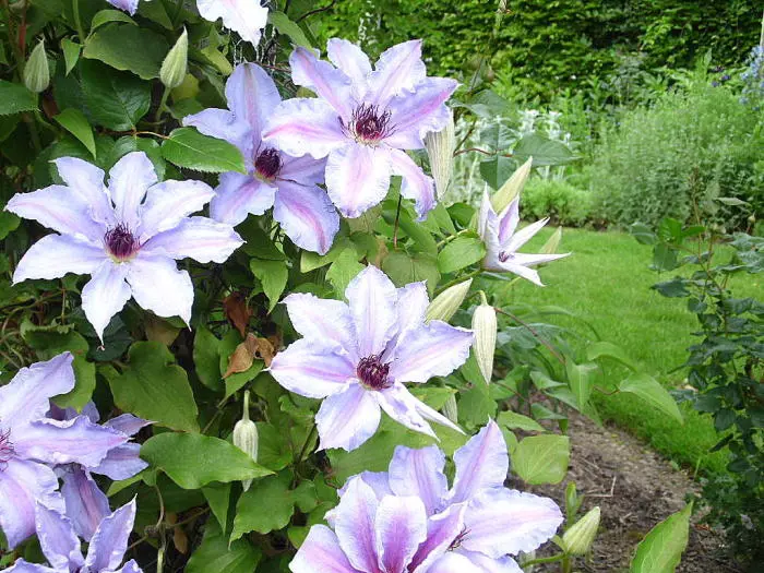 Ce sont des clématites à grandes fleurs précoces qui fleurissent sur le vieux bois.