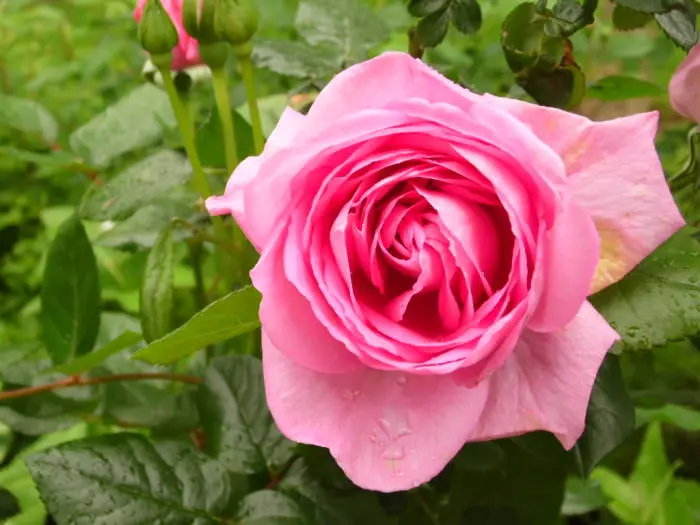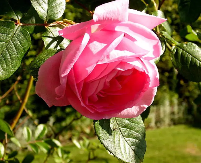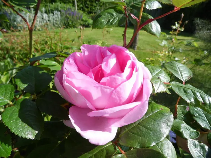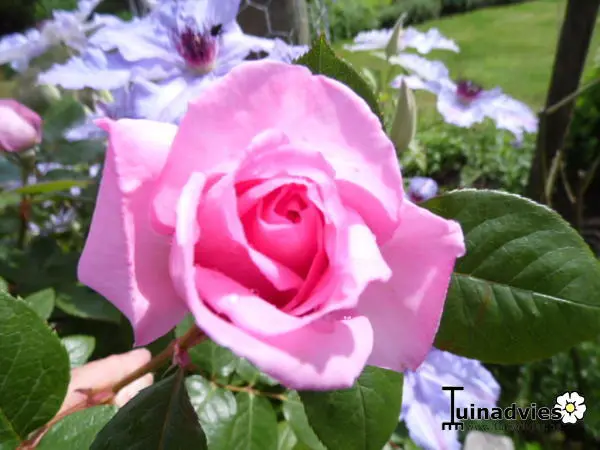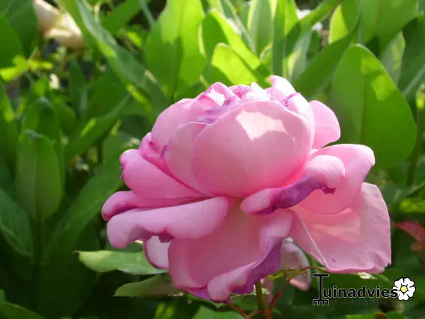 Un arbuste à grandes fleurs et fortement parfumé, qui peut être dressé comme rose grimpante. La fleur est bien remplie d’une couleur rose violacée.