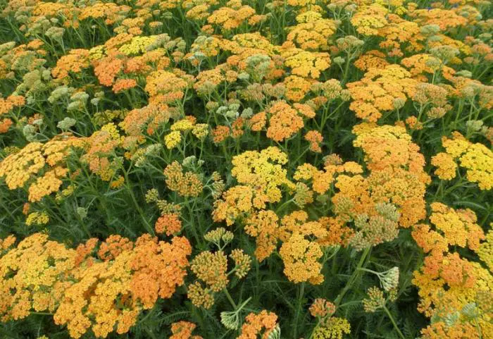 C’est un pousseur robuste avec de magnifiques pinnats gris-vert foncé, des feuilles et des fleurs aromatiques avec des ombelles aplaties de fleurs ocre-orangées. Les fleurs pâlissent ensuite en un jaune crème éclatant, ce qui donne une plante avec différentes teintes rouge/roses.