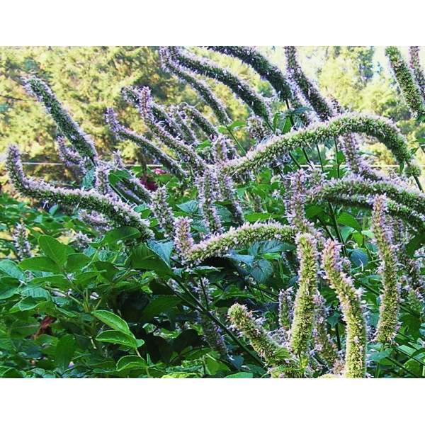 L’agastache 'Serpentine' est une plante très touffue avec une riche floraison de fleurs bleu lavande douces. Les longues pointes fleuries ont une forme courbe avec un pli au sommet.