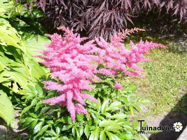 Une spirea de la série YOUNIQUE. Ces astilbes forment une touffe ronde de feuilles basses et fines qui recouvrent complètement le sol.