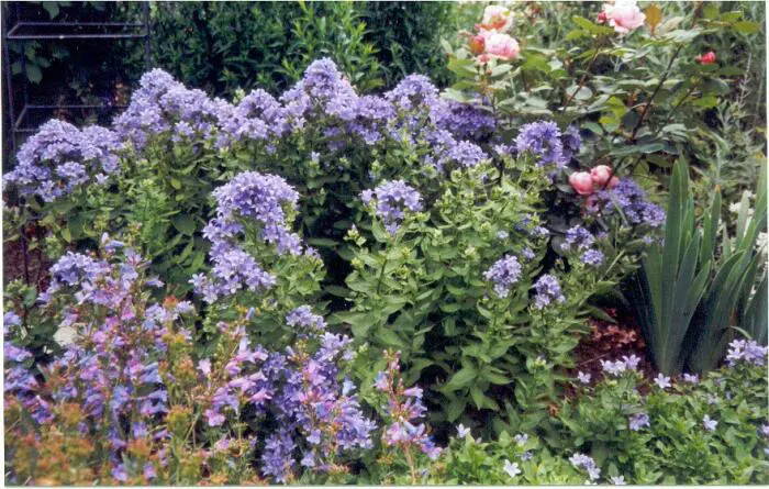Campanula lactiflora « Variété de Prichard » possède de hautes tiges avec de grandes ombelles de fleurs lavande-bleu en forme d’étoile.