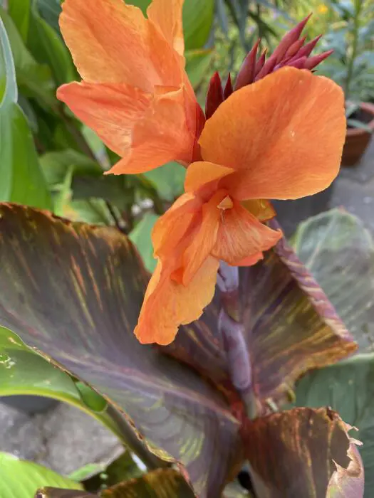 Les grandes feuilles vert bronze foncé sont frappantes, ressemblant à de grandes feuilles de bananier.