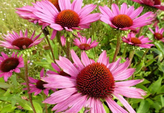 Echinacea purpurea 'Little Magnus' est une échinacée à croissance basse avec de grandes fleurs violette-rosées.