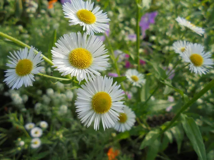 Les fleurs ressemblent à de petites marguerites et présentent de nombreuses fleurs fines de raie autour d’un cœur jaune doré.