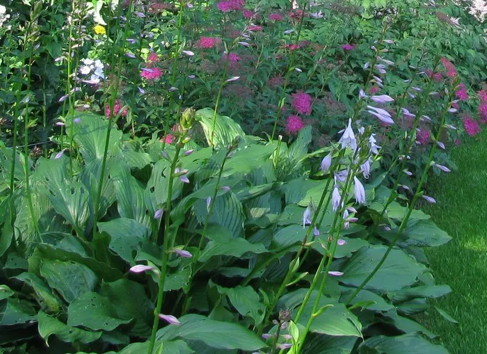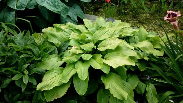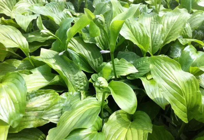 Hosta 'Honeybells' a des feuilles vert clair, étroites et ondulées.