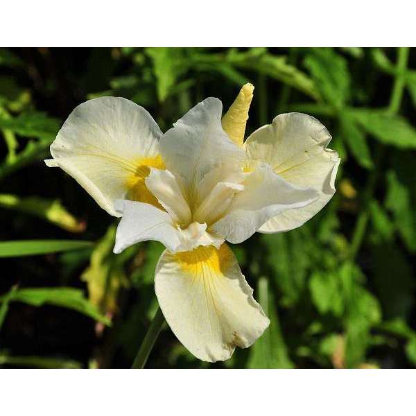 C’est un iris blanc pur sans barbe, avec un jaune doré à la gorge.