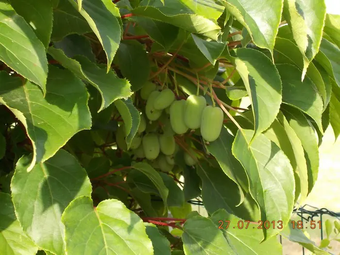Ces petits kiwis (3-5 cm) sont comestibles et ont un goût aromatique sucré.