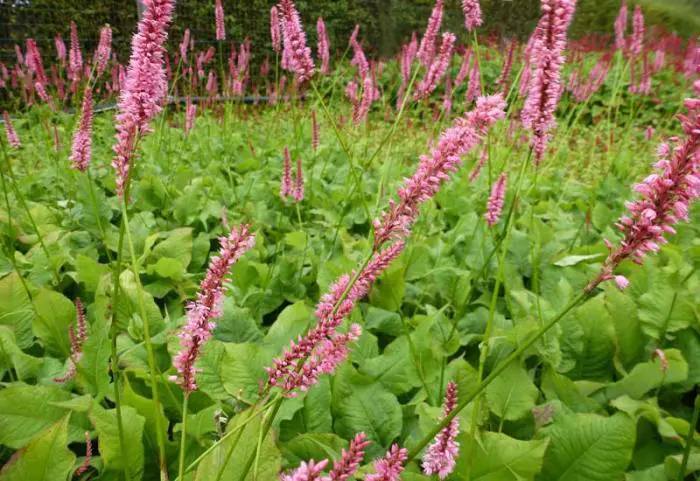 Persicaria amplexicaulis « Forme de Jo et Guido » donne un accent vertical sur la bordure. Une grande plante touffue qui est particulièrement belle en groupes plus nombreux.