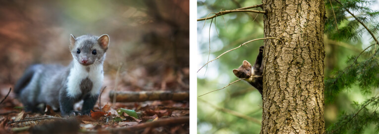 La martre des pins est plus rare dans le Benelux. Elle est très similaire en taille et en couleur à la martre pierre, bien que les parties claires de son pelage soient plus jaunâtres. Comme son nom l’indique, la martre des pins vit principalement en forêt et évite tout contact avec les humains. C’est un excellent grimpeur et choisit souvent un tronc d’arbre creux ou un vieux nid de pics comme lieu de vie.