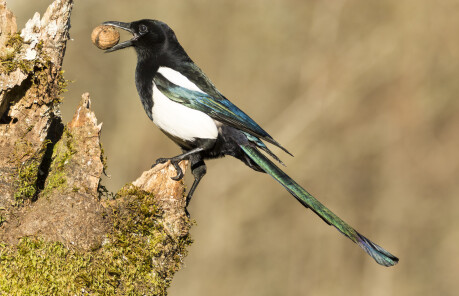 « L'un apporte la calamité, deux apportent le bonheur », dit la croyance ancienne ! La pie (Pica pica) est sans aucun doute le membre le plus facile à reconnaître de la famille des oiseaux. Cet oiseau blanc noir d’environ 40 à 50 cm de long, avec un beau plumage brillant et une longue queue, construit son grand nid en hauteur dans les arbres. Le nid est composé d’un mélange de brindilles avec de la boue et est recouvert d’herbe sèche et de poils provenant de différents types de bétail. Dans de nombreux cas, le nid possède un toit pour se protéger contre divers prédateurs, l’entrée est également bien dissimulée.