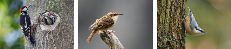 Les pics, grimpeurs et sittelles ont un bec remarquablement long mais fin avec lequel ils enlèvent les insectes de l’écorce des arbres. Il ne vous surprendra donc pas que ces oiseaux n’aiment pas les espaces ouverts et préfèrent donc manger tranquillement dans un endroit sûr dans un tronc d’arbre.