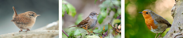 Troglodyte, Bruant des haies et Robin
