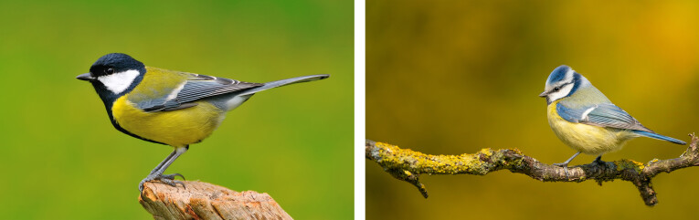 On trouve des mésanges mésanges dans presque tous les jardins toute l’année, bien que nos nichoirs soient le plus souvent habités par des grands (Parus major) et des cyanistes caeruleus (bleus). Le grand est le plus grand des deux, environ 14 cm. C’est un oiseau de couleur frappante avec une capuche noire et des taches blanches sur les joues. La capuche noire entoure les yeux et entoure les joues du cou ou du bas en une bande noire qui divise la poitrine jaune vif en deux. Les femelles sont généralement légèrement plus pâles que les mâles. De vrais acrobates, comme tous, sont excellents. Ils adorent les boules de suif, les cacahuètes et les graines de tournesol, mais le beurre de cacahuète est aussi sur leur menu. Un nichoir avec une ouverture d’entrée de 32 mm convient à cet oiseau à pied.