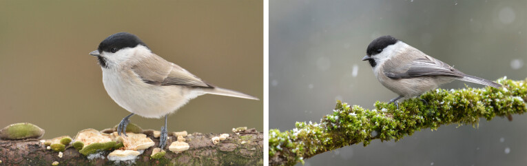 Le (Parus montanus) a la même taille que le noir et les couleurs sont également similaires. Là encore, la capuche noire englobe les yeux, la tête noire est étroite de sorte que les joues paraissent plus larges et s’enfoncent agréablement dans la zone de la poitrine, beige à brun clair, sans bande. Cette petite gemme est aussi reproductrice de grotte et peut choisir sporadiquement une nichoir bleue comme foyer. Pour compliquer encore les choses, cet oiseau possède une espèce jumelle presque identique, la brillante (Parus palustris). Le col noir ou le col du glossy est légèrement plus petit que celui du glossy et le bonnet noir devrait en théorie briller davantage ! Le chant des deux oiseaux est également clairement différent. Le glossy se trouve principalement dans les régions où le hêtre est mature, tandis que le saule préfère à la fois les conifères et les feuillus en combinaison avec des arbustes denses.